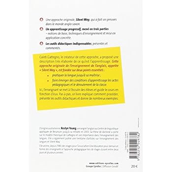 Une approche originale, Silent Way, qui a fait ses preuves dans le monde anglo-saxon. Un apprentissage progressif, mené en trois parties - notions de base, techniques d'enseignement et mise en application concrète. Les outils didactiques indispensables, présentés et commentés. Caleb Gattegno, le créateur de cette approche, a proposé une description très élaborée de ce qu'est l'apprentissage. Cette approche originale de l'enseignement de l'anglais, appelée " Silent Way ", est fondée sur deux points essentiels : pratiquer la langue jusqu'à sa maîtrise ; faire émerger des conditions d'apprentissage les actes pédagogiques et le déroulement de la classe. Ici, l'enseignant se met à l'écoute des élèves et guide le cours en fonction d'eux. Pas à pas, ce livre explique comment procéder, présente les outils didactiques et donne de nombreux exemples.