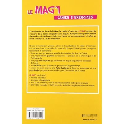 Structure : Des exercices pour enrichir les activités du livreDes pages Sons et Graphie : consacrées à la pratique de la phonétique et de l'orthographeDes pages de synthèse des contenus linguistiques essentiels : à faire à la maison et à corriger en classe, notées sur 20 Un Portfolio pour évaluer son processus d' apprentissageToutes les deux unités : Une auto-évaluation à faire en autonomie, notée sur 20Une page Projet proposant une activité pour l' ensemble de la classe